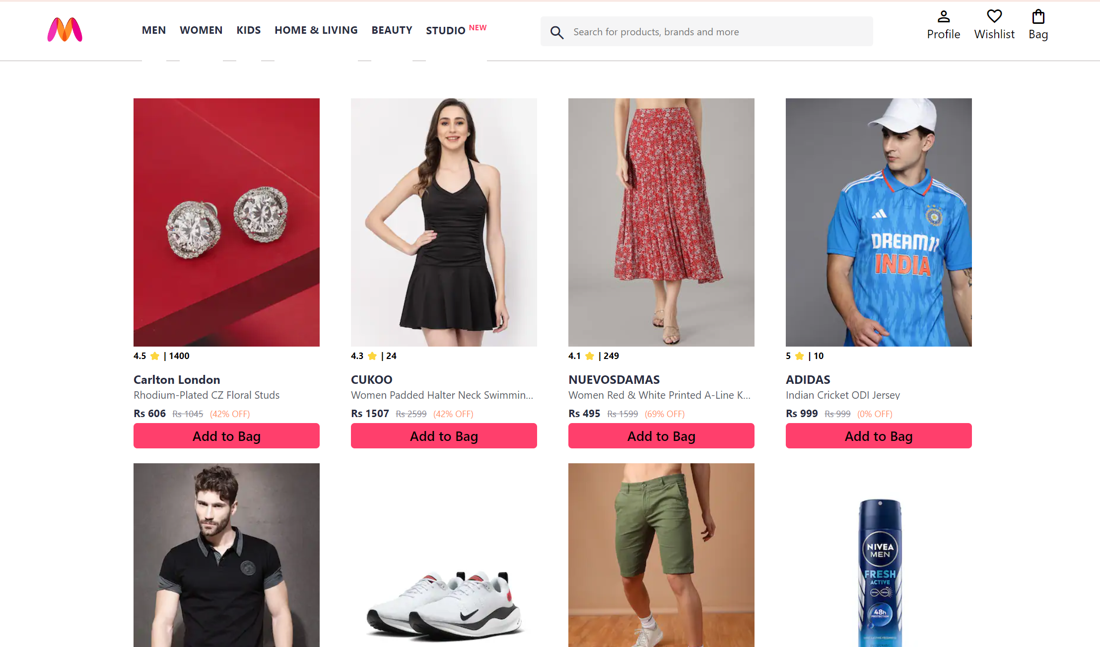 Our Myntra clone, crafted with HTML, CSS, and JavaScript, delivers a seamless e-commerce experience. Featuring responsive design, user-friendly navigation, it ensures efficient shopping. The platform supports a dynamic product display, a smooth checkout process, and user-friendly account management. Technologies: HTML, CSS, Javascript.